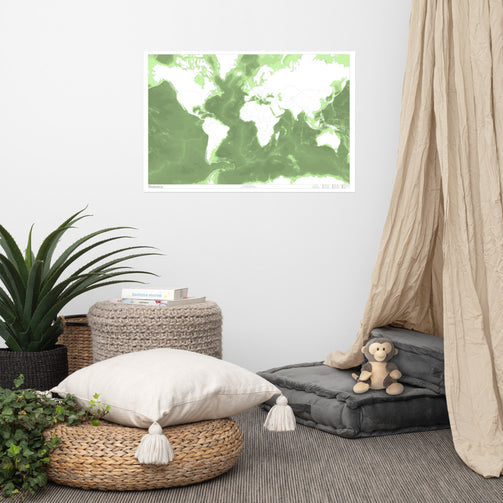 The World Bathymetry Map by Statistica categorises the seabed into depth ranges shown by colour to produce a map like no other, focusing entirely on the oceans and leaving the continents blank, with a minimalistic look. This version includes country borders.